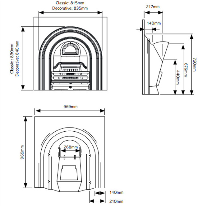 The Stovax Decorative Arched Insert pre-dates the Classical model by some 30 years, having been designed around the time of the Great Exhibition in 1851. Accordingly, it incorporates elements of Greek and Roman detailing which were frequently adopted as ornamentation, itself a reflection of Britain’s growing sense of grandeur and Empire.