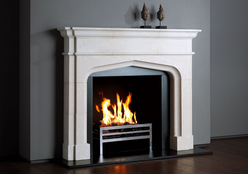 The Greenwich is a fire surround that includes a wealth of architectural detail and features an inverted breakfront mantel shelf and conforming frieze above an attractive Gothic Arched opening.