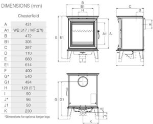 This wood burning and multi-fuel stove is available in a wider format: the Chesterfield 5 Wide.