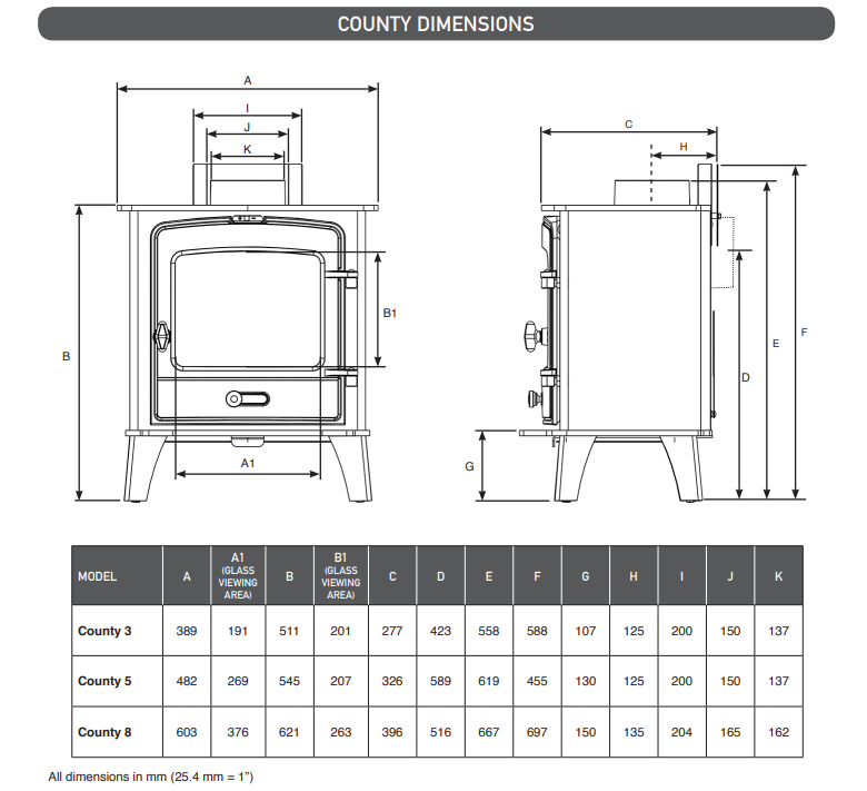 Styled to harmonise with any interior, the Stovax County range is the latest Ecodesign wood burning and multi-fuel stove range from Stovax. Combining timeless styling with advanced combustion systems, all stoves in the range are Ecodesign and DEFRA exempt as standard, without any modifications required. The County’s charming rustic exterior has been designed to suit modern and traditional interiors alike. Classic details such as the arched window and door bevelling are balanced with clean lines and a utilitarian form, while a large glass window delivers a superb view of the flames.