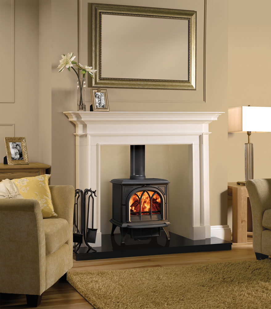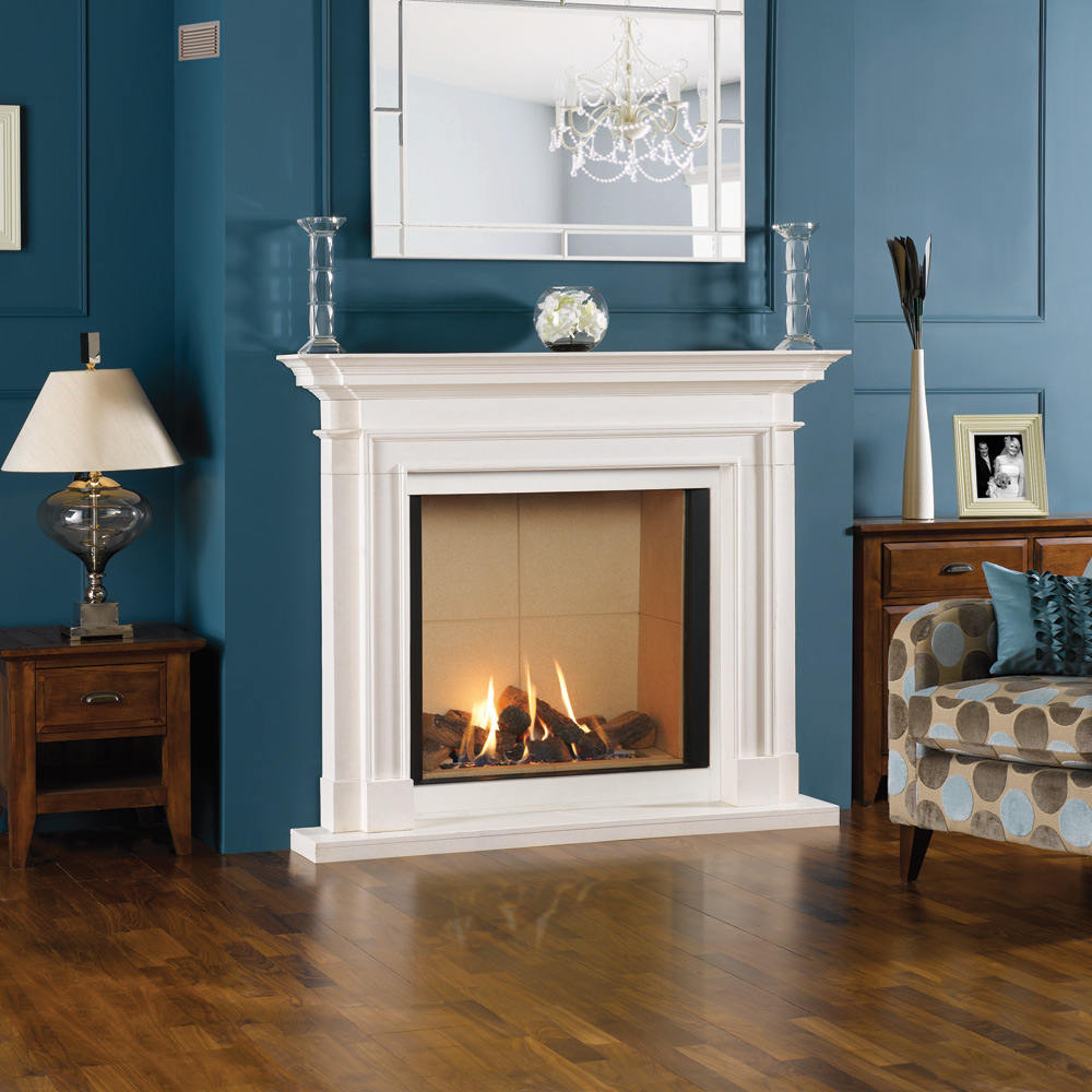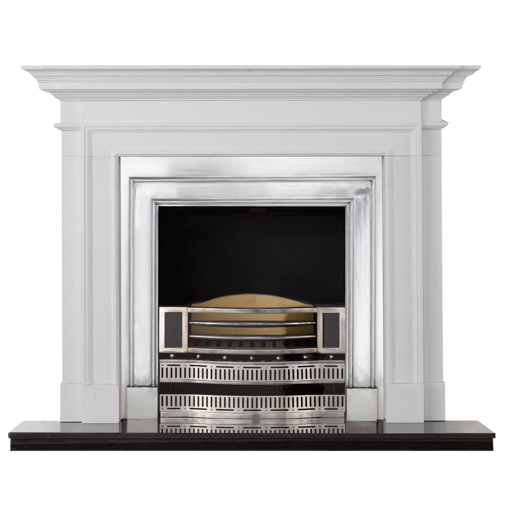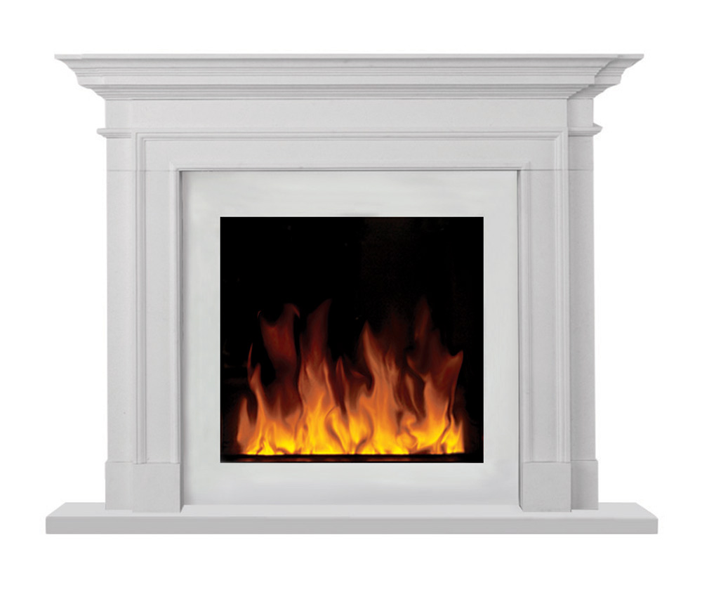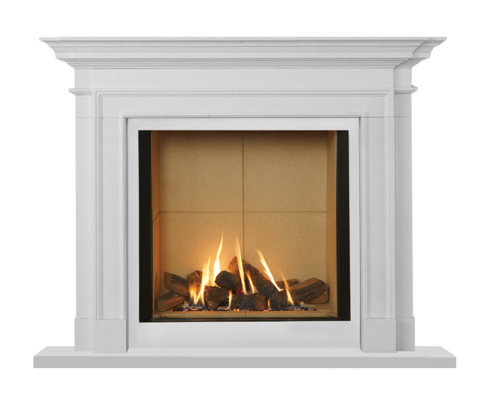 The Sandringham stone mantel is available in a choice of Natural Limestone and Antique White Marble.