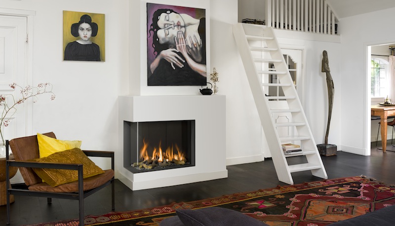 An unusual style of Fireplace, designed to be installed offset in your room. It has 2 sides of Glass unlike the 3 sided View Bell, so it can be butted up to a corner wall and create a Stunning Feature to your room.