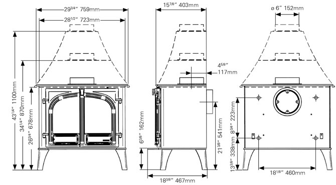 Width Height (flat top) Depth Weight Flue Diameter Energy Efficiency Class